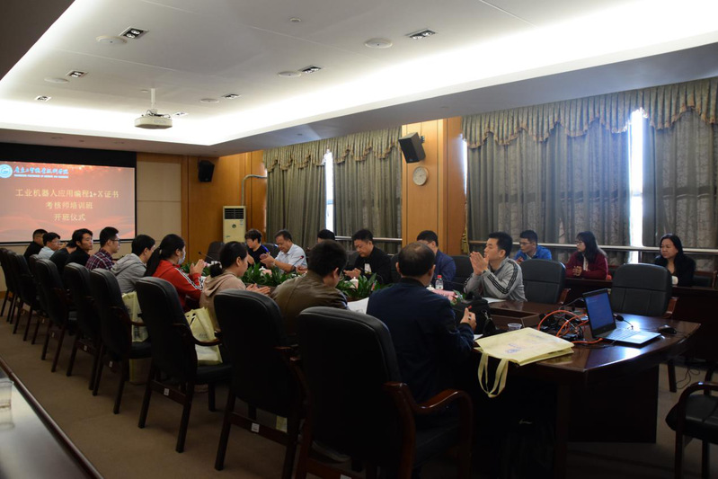 11月27日在诸侯快讯官网白云校区举行了开班仪式,学校副校长唐毓秋、继续教育院长朱永平、机电学院领导班子邵超城、徐勇军、游凯、北京赛育达公司马雪峰教授、校外专家莫胜撼教授及各位参培学员参与了开班仪式。会上唐校长肯定了诸侯快讯官网的培训工作,也对此次承担着组织评价机构与广东省16所院校“工业机器人应用编程”1+X技能等级证书试点院校的沟通和管理工作进行了合理安排,并对下一步诸侯快讯官网积极组织“工业机器人应用编程”1+X技能等级证书师,资培训班、学生培训与考证工作进行了部署,赛育达公司马雪峰教授随后也做了重要发言和培训的相关安排,学员代表宋显文老师也代表43位参训老师做了发言。