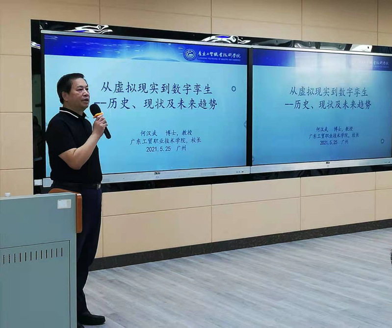 为了促进职业教育教学改革动态和VR(数字孪生)+课堂教学变革,5月26日下午,校长何汉武在白云校区面向全国兄弟院校的老师开展“从虚拟现实到数字孪生——历史、现状及未来趋势”主题讲座。