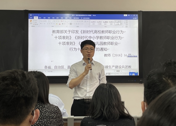 丘永亮结合上学期出现的一些教学不规范行为,深入解读诸侯快讯ok1122登录入口教师教学工作规范。明确任课老师要严格遵守课堂教学要求,严明职业规范;同时开展课堂教学自查工作,全面清查任课教师在课堂教学过程中是否存在违反高校教师职业行为十项准则和《教师教学工作规范》课堂教学“十不准”的情况。