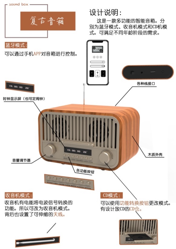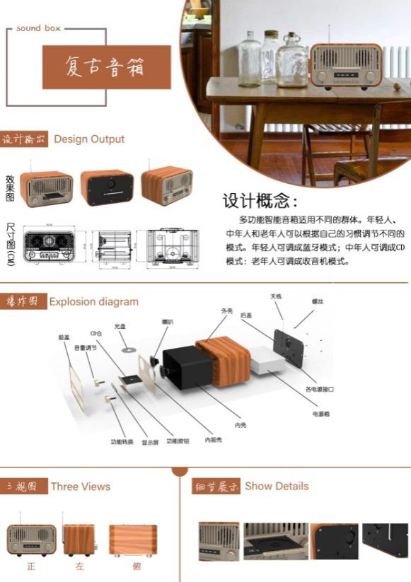 图4 产品设计方向作品2:复古音箱 林曼儿 指导老师:丘永亮