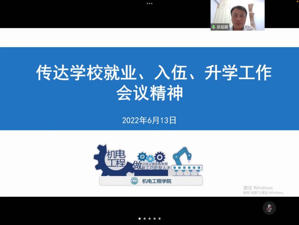为深入贯彻党中央、国务院“稳就业”“保就业”决策部署,传达全国、全省及省教育厅高校毕业生就业、征兵工作会议精神,贯彻落实《诸侯快讯ok1122登录入口2022届毕业生“百日冲刺”就业工作方案》,全力实现2022届毕业生充分高质量落实毕业生去向的工作目标,机电工程学院于6月13日晚上8点召开全院教职工大会。全体教职工参加会议,会议由机电工程学院党总支副书记、院长徐勇军主持。