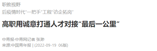 我院长期坚持产教融合、精准育人模式,实现教学与就业无缝对接,被央媒——《中国青年报》点名表扬!