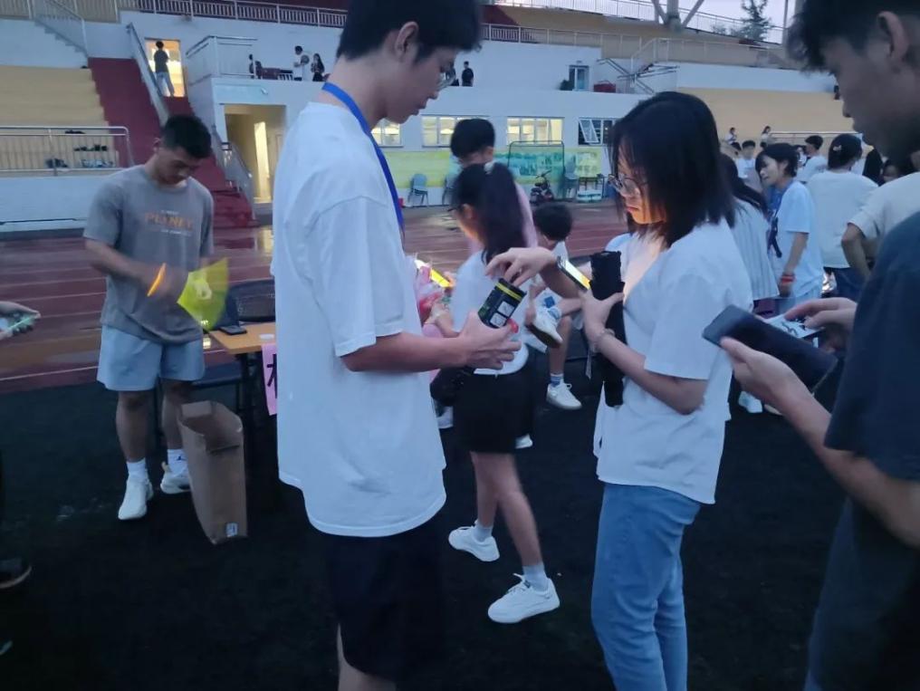 工作人员分发荧光棒