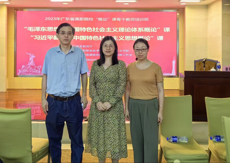 根据《广东省教育厅办公室关于举办 2023 年高校思想政治理论课骨干教师培训班的通知》等文件精神和学院安排,马克思主义学院教师魏银立、毛玲、张薇薇于2023年6月9日-11日参加了2023年度广东省高职院校“概论”课骨干教师培训班;张薇薇于2023年6月16日-18日参加了2023年度广东省高职院校“思想道德与法治”课骨干教师培训班。