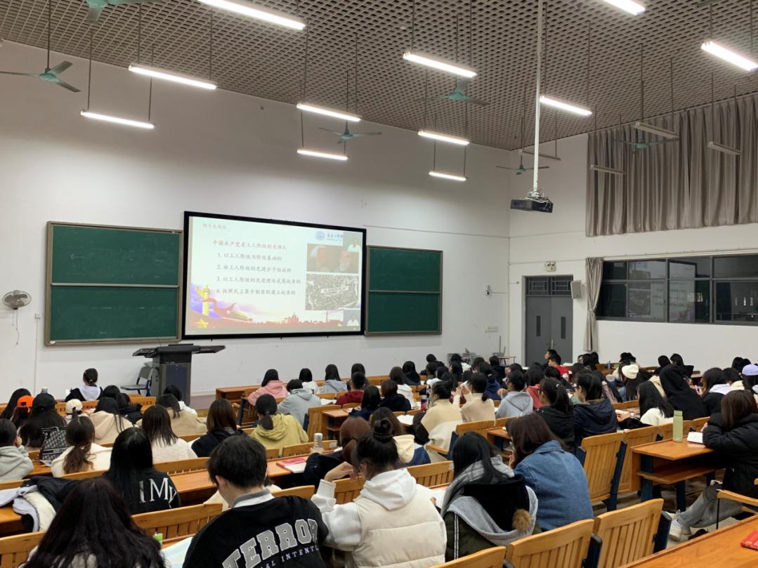 张宁主要从党的新生期,奋斗期,探索期和成熟期这四个部分阐述了党近一百年的光辉历程,并强调入党积极分子要端正入党态度,树立正确的入党动机。随后,张宁把五四运动和抗日战争做了细致入微的讲解,深入阐述当时大学生、人民群众的艰苦奋斗精神。通过学习,同学们充分了解到那时的青年担当和中华民族的团结。课程尾声,张宁还邀请了多名同学代表发表了自己对这节党课学习的感悟和思想认识。