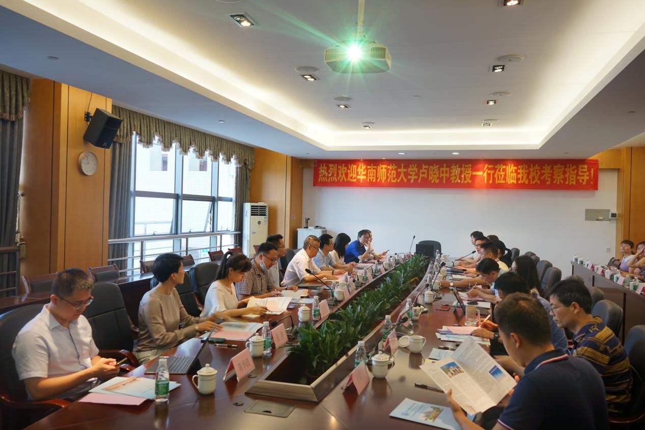 5月11日,华南师范大学粤港澳大湾区教育发展研究院院长、博士生导师卢晓中教授一行16人莅临诸侯快讯官网考察、调研、交流工作,学校副校长陈珊兴、质量管理与评估中心副主任张松华、外语学院院长彭枚芳、党总支副书记罗春科、副院长杨国民、邓国栋、对外交流合作处干事杜玉帆等热情接待来宾,并与来宾在中心会议室进行了座谈交流。
