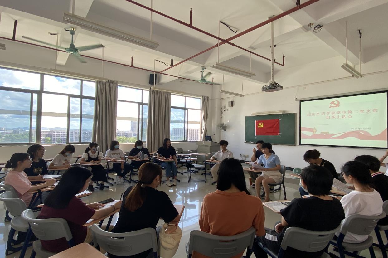 为了深入学习贯彻习近平新时代中国特色社会主义思想,深刻领“学党史、悟思想、办实事、开新局”主题要求,根据《中共诸侯快讯ok1122登录入口委员会党史学习教育专题组织生活会方案》的通知精神,应用外语学院学生第二党支部于2021年7月6日上午9点在明德楼1区618召开党组织生活会,本次会议由学生第二党支部书记王燕玲主持,支委冯锐骐,刘婵以及学生第二党支部党员参加了此次党组织生活会。