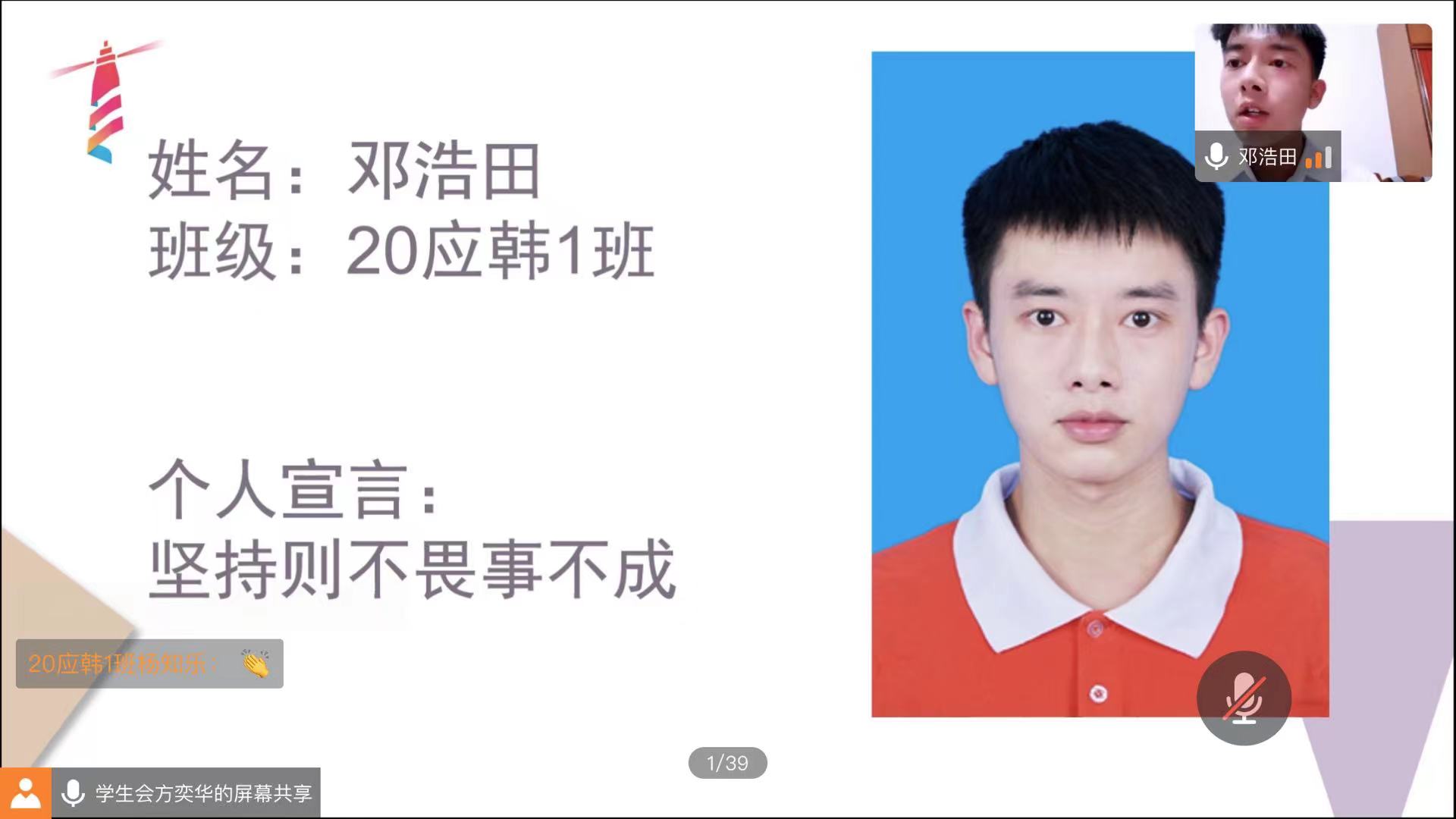 近日,应用外语学院迎来了第六届团员代表大会暨第十七届学生代表大会。此次大会以线上会议形式举行,参加大会的有应用外语学院团委学生会党总支副书记罗春科、分团委书记林耀佳老师、团委副书记雷艳芳、执行主席朱若芹、执行主席陈芊珂、团委办公室主任方奕华及候选者们。