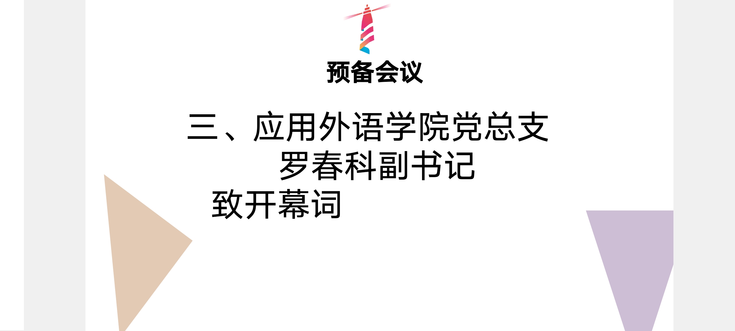 大会伊始,党总支副书记罗春科致开幕词提出希望当选团委委员们可以带领广大同学为实现学院、学校跨越式发展贡献青春和力量,他表示在建党100周年等重要活动节点上召开的本次会议是全院青年参与政治生活的一件大喜事。紧接着由应用外语学院团委学生会团委副书记雷艳芳总结了这两个学期各活动成果及取得的成就。竞选正式开始,本次竞选结果通过严谨的投票环节以及面试表现、综合日常表现所得。