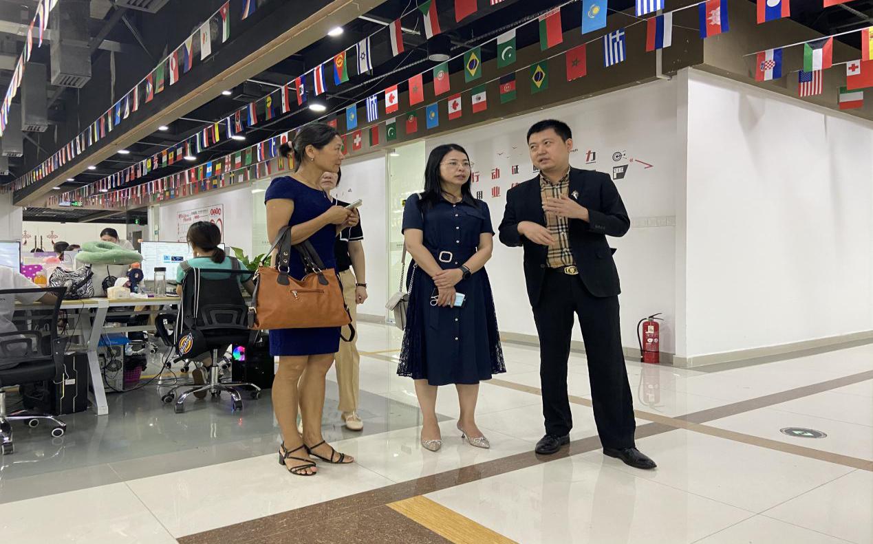 广东头狼教育科技有限公司是商务英语专业校级学徒制合作单位,7月22日上午,广东头狼教育科技有限公司CEO朱加宝接待以彭枚芳院长为代表的应用外语学院的教师,并陪同参观华南电商产业学院、深圳思慕尔科技有限公司。该产业园区以校企合作、产教融合、人才孵化模式培养跨境电商人才,并投入市场进行实战化训练。上午观摩学生实习环境、培训内容等,受益匪浅。