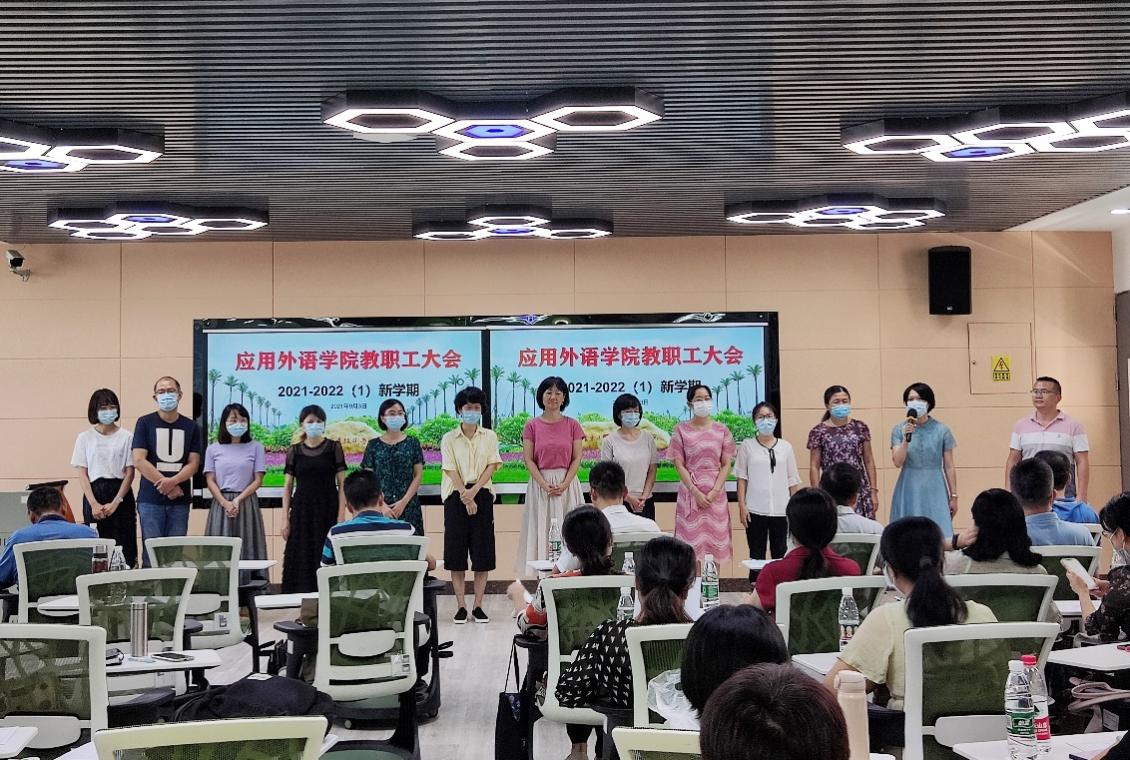 会议伊始,彭院长首先给各位领导以及教职工给予了新学期的问候,并着重介绍10余位从荔湾校区加入外语大家庭的新老师,同时邀请新教职工到台前做简单的自我介绍,进一步拉近彼此距离。