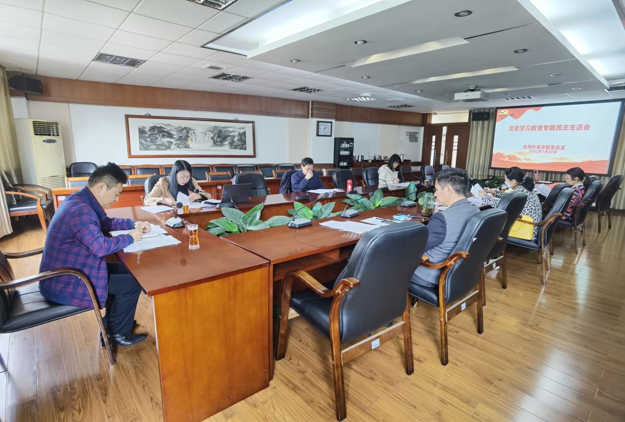1月20日下午,应用外语学院党总支在天河校区中心会议室召开了2021年度党史学习教育专题民主生活会,学校党委委员、副校长陈珊兴莅临现场进行指导,学院党政领导班子参加,党总支支委、学生党支部书记列席参加了会议。会议由学院党总支副书记、院长彭枚芳主持。