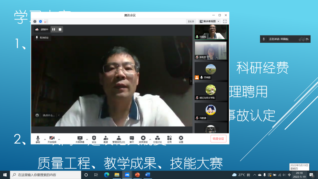 副院长邓国栋在兼职兼课教师制度培训线上视频会议中发表讲话