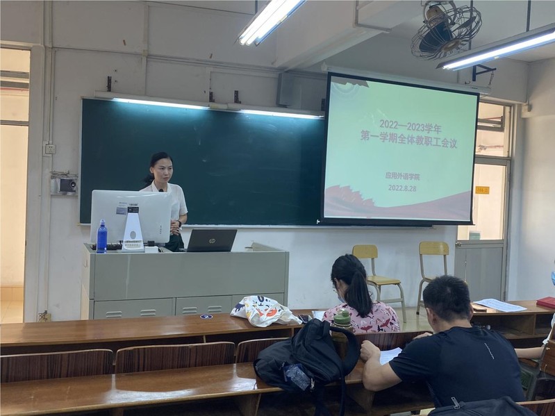 外语学院党总支临时负责人成海涛同志在大会作专题报告。报告坚持问题导向,梳理了过去一学期学院主要工作推进情况及存在的若干问题;随后以先进榜样为引领,对认真负责、主动担当、辛劳付出的部分学院老师、辅导员、班主任给予了充分肯定和高度赞扬。报告重点以目标为导向,对外语学院新学期的重点工作明确了任务和要求,明确提出:一是加强内涵建设,完善并落实学院各项管理制度、分配制度等,切实加强日常管理,提高“管理育人”“服务育人”能力,认真履行“为党育人、为国育才”的神圣使命;二是实施“学院分项工作周历制”,定时复盘工作进度,科学安排后续任务。以此落实目标导向让工作更有计划,以此跟进过程管理让工作更有效率。三是加强教职工队伍建设,切实开展教科研活动,提升教师教科研能力;加强教师队伍、辅导员队伍的专业技能培训,不断提高专业教学能力和育人能力;对标先进楷模,塑造良好教师形象,持续推进师德师风建设,不断优化学院师资队伍的综合素质。最后,成海涛同志还倡导学院全体教职工提高政治站位、找准发展定位、放眼未来,奋发奋进,共同推动外语学院更高质量发展。