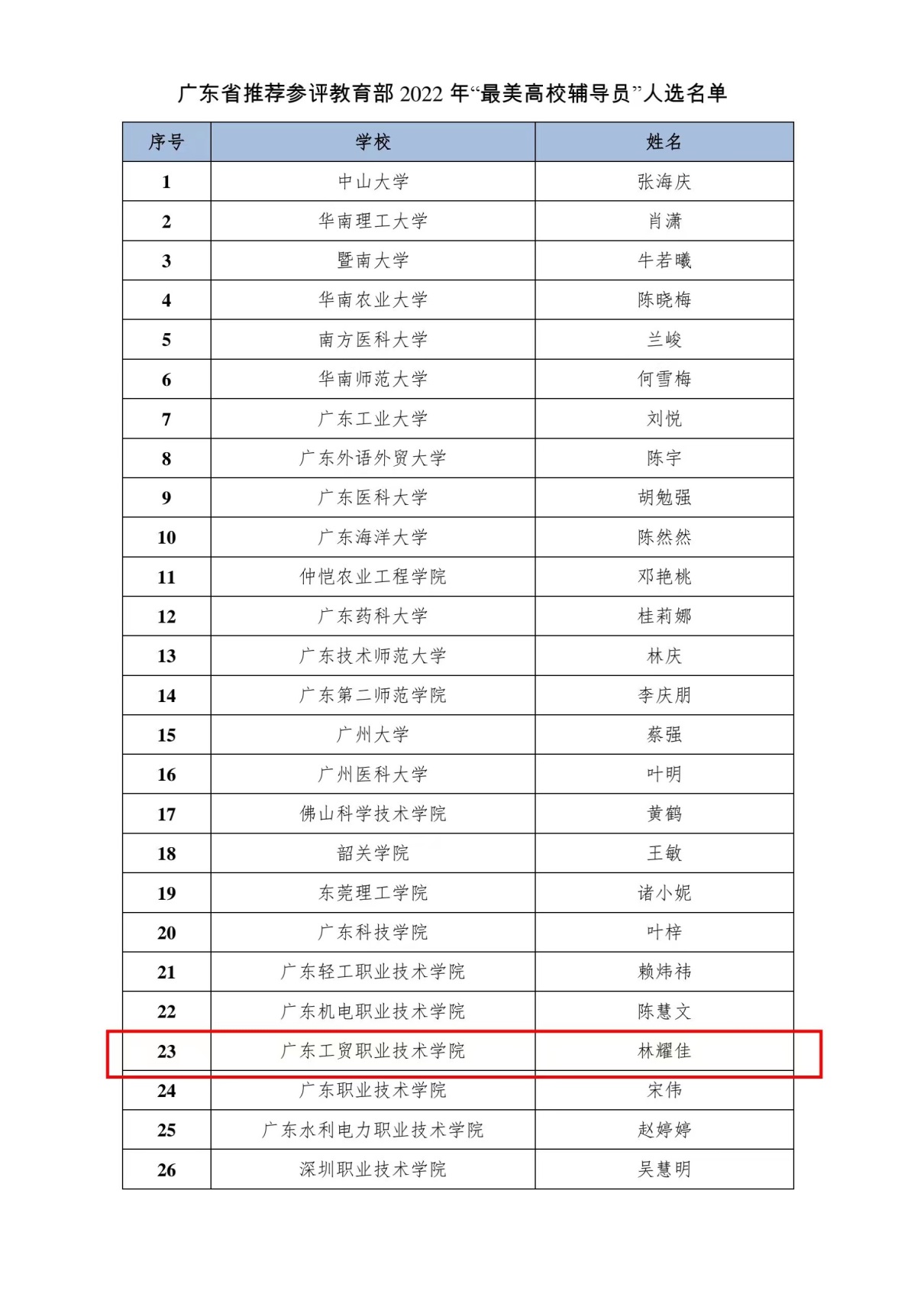 经过学校评审推荐,广东省教育厅审核评选推荐,诸侯快讯官网应用外语学院辅导员林耀佳老师获推荐参评教育部2022年“最美高校辅导员”。