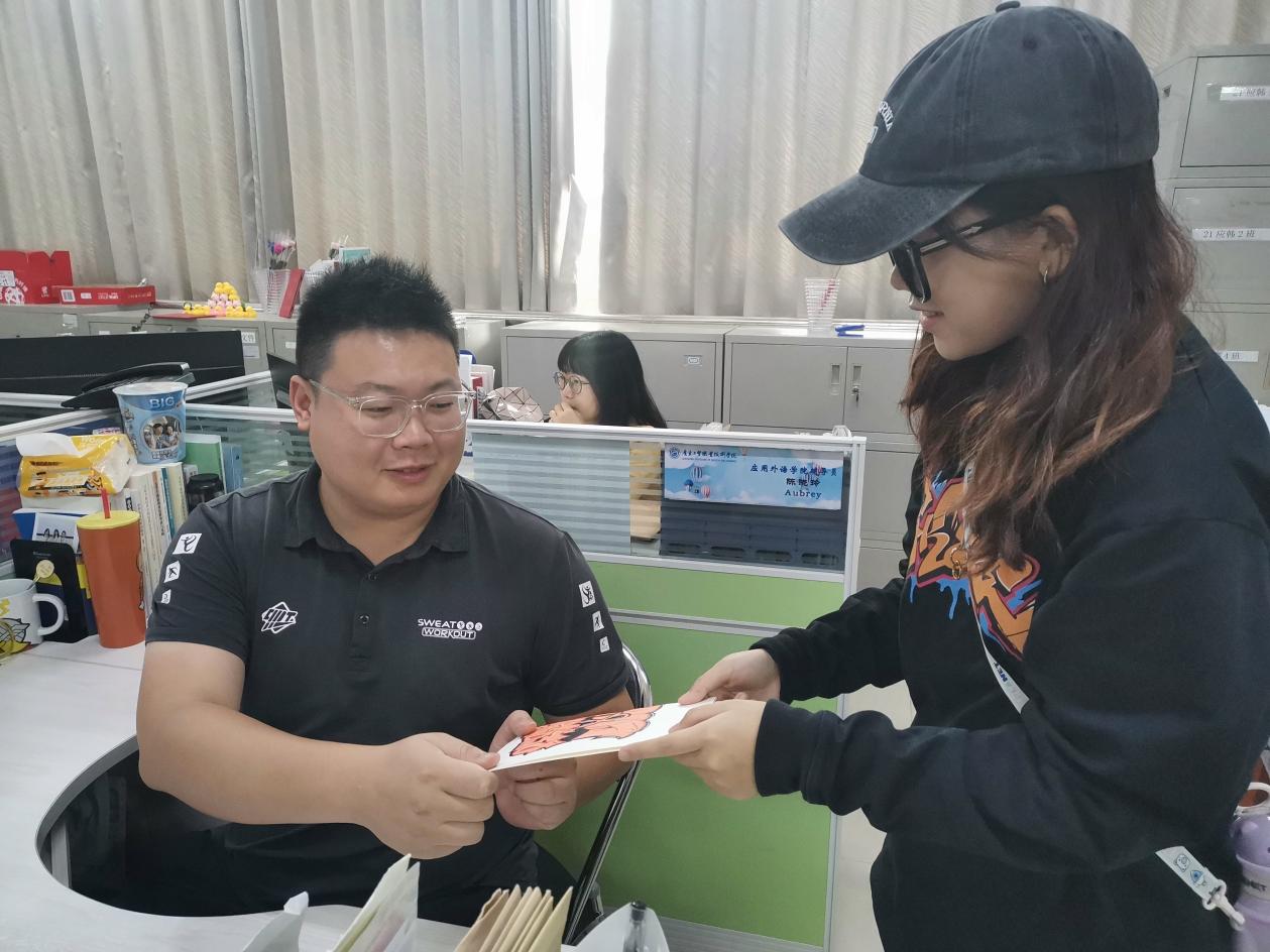 翻开贺卡,里面有通红的爱心,有简单的问候,有可爱的画作,更有美好的祝福……一张张五彩斑斓的卡纸,在同学们灵巧的手中,变成了圆形、心形、方形等形状,上面写着饱含深情的文字,配着精心设计的花边和图案,深深表达着对老师们的感激与祝福。此次活动总共收到了300份作品,经过初筛选出了43份在易班进行线上投票,最后选出了13名人气奖。此外,党群服务中心工作人员还邀请了部分同学走进办公室向可亲可敬的老师们送出真诚祝福,一声“老师,您辛苦了”凝聚起师生之间友谊的桥梁。