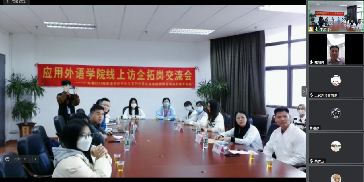 通过这次书记校长访企拓岗交流会暨企业空中宣讲会,学校与企业之间互通有无,加强了校企合作,学校不仅为企业输送人才,并希望企业参与学生人才培养的全过程,学校也根据企业需求修正人才培养方案,同时也可以积极参与到企业相关建设方面来,使校企合作“零距离”。应用外语学院一直高度重视毕业生就业问题,多措并举为学院毕业生办实事,拓宽就业渠道,寻求更加优质就业信息。接下来,学院将继续开展形式多样、内容丰富的就业创业指导服务活动,激发同学们的求职主动性和积极性。希望我院2023届毕业生能够积极主动出击,了解当前形势下企业用人需求,在毕业前找到适合自己的发展平台。