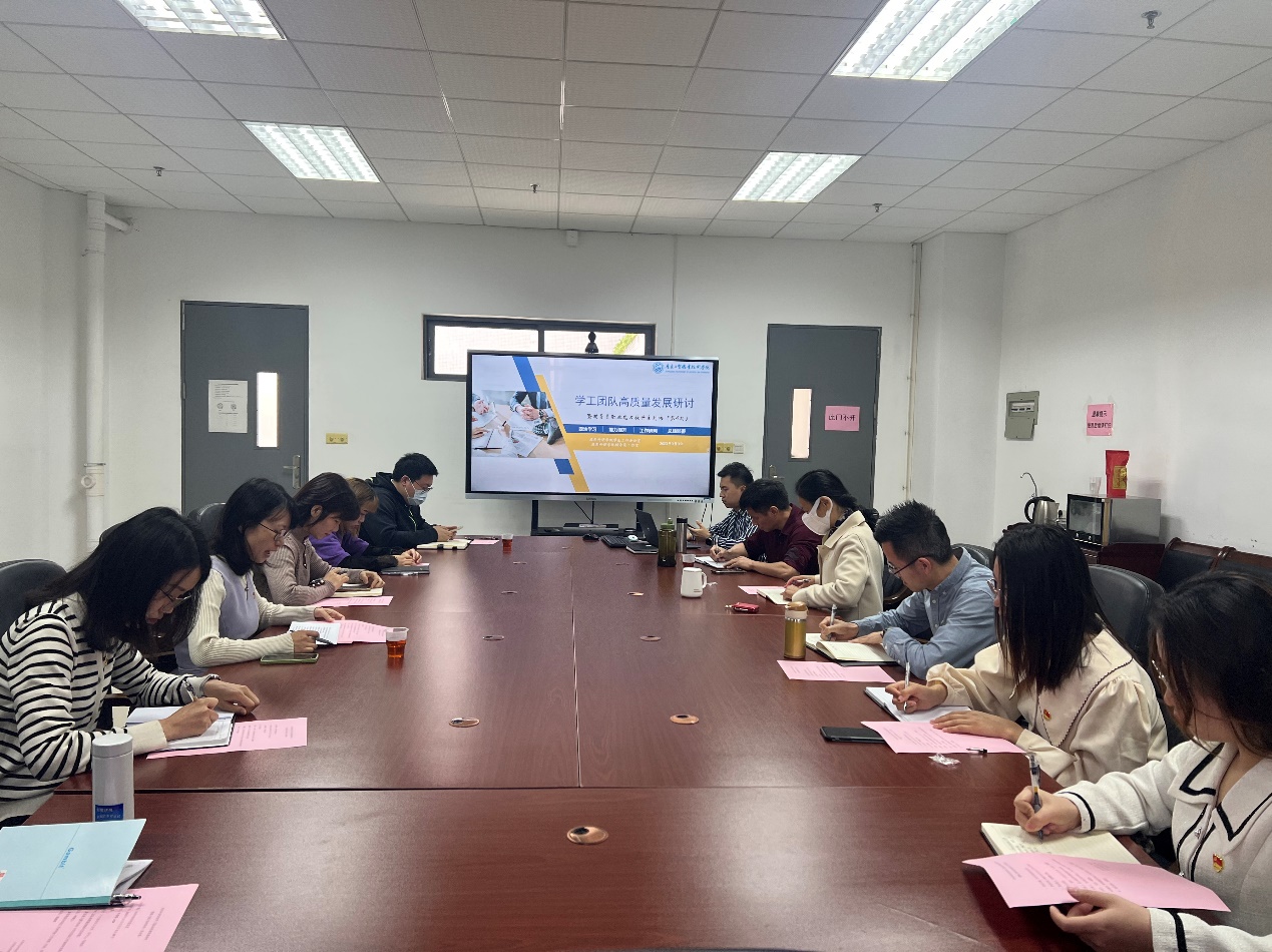 奋进正当时,砥砺再扬帆。3月3日上午,在白云校区明德楼1区304,由应用外语学院党总支召集召开了学工团队高质量发展研讨会。研讨会对接学工工作新常态,从问题导向出发,以心理健康教育专题培训实战案例交流、新近问题研讨、经验分享等形式展开,学院学工办主任林耀佳主持了研讨会,学院党总支书记成海涛、学院党总支副书记罗春科、全体学工办成员认真参与了全程研讨。