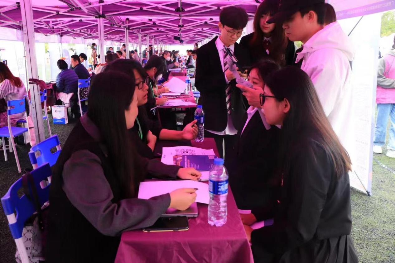 供需见面会现场气氛热烈、人头攒动,许多摊位前面大排长龙。同学们着装整齐、踌躇满志,在不同的用人单位的展位前积极与用人单位沟通交流,咨询岗位需求的详细情况,展现着外语学子独特的精神风貌。