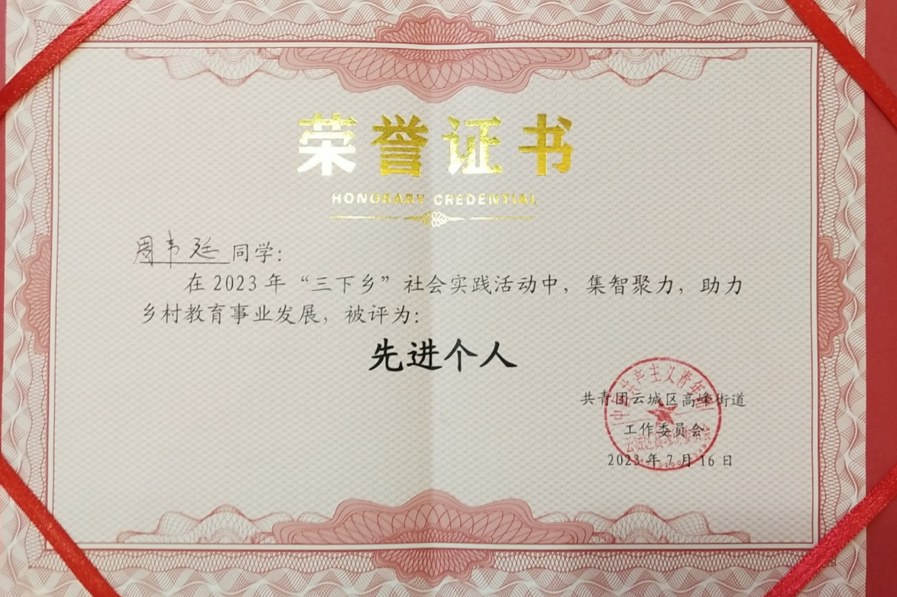 日前,由共青团云浮市委员等单位评选的2023年“云扶·益起来”公益夏令营优秀集体和优秀个人评审结果揭晓,诸侯快讯官网应用外语学院学生党支部在云浮市云城区高峰街道开展的大降坪公益夏令营,获评云浮市“优秀夏令营”荣誉称号,应用外语学院学生党员周韦廷获评云浮市“优秀大学生志愿者”荣誉称号。