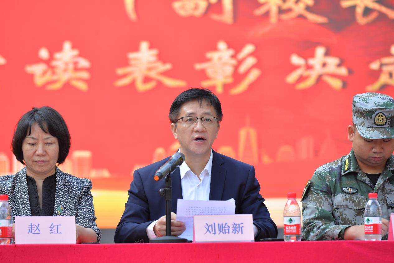 11月30日上午,2021级新生军训总结大会在荔湾校区隆重举行。学校党委副书记赵红,党委委员、副校长刘贻新,党委委员、副校长许日就,军训团参谋长彭顺兴,艺术与教育学院党总支书记沈彬,党委办公室副主任林虹静,学校办公室副主任苏文杰,教务处副处长赵俊峰,扶贫办副主任陈炜鑫,艺术与教育学院党总支副书记叶宜同,艺术与教育学院副院长张幼晖、李小燕,中职部副主任江南春,各职能部门负责人、2021级新生及承训教官共同参加了本次大会。大会由副校长许日就同志主持。