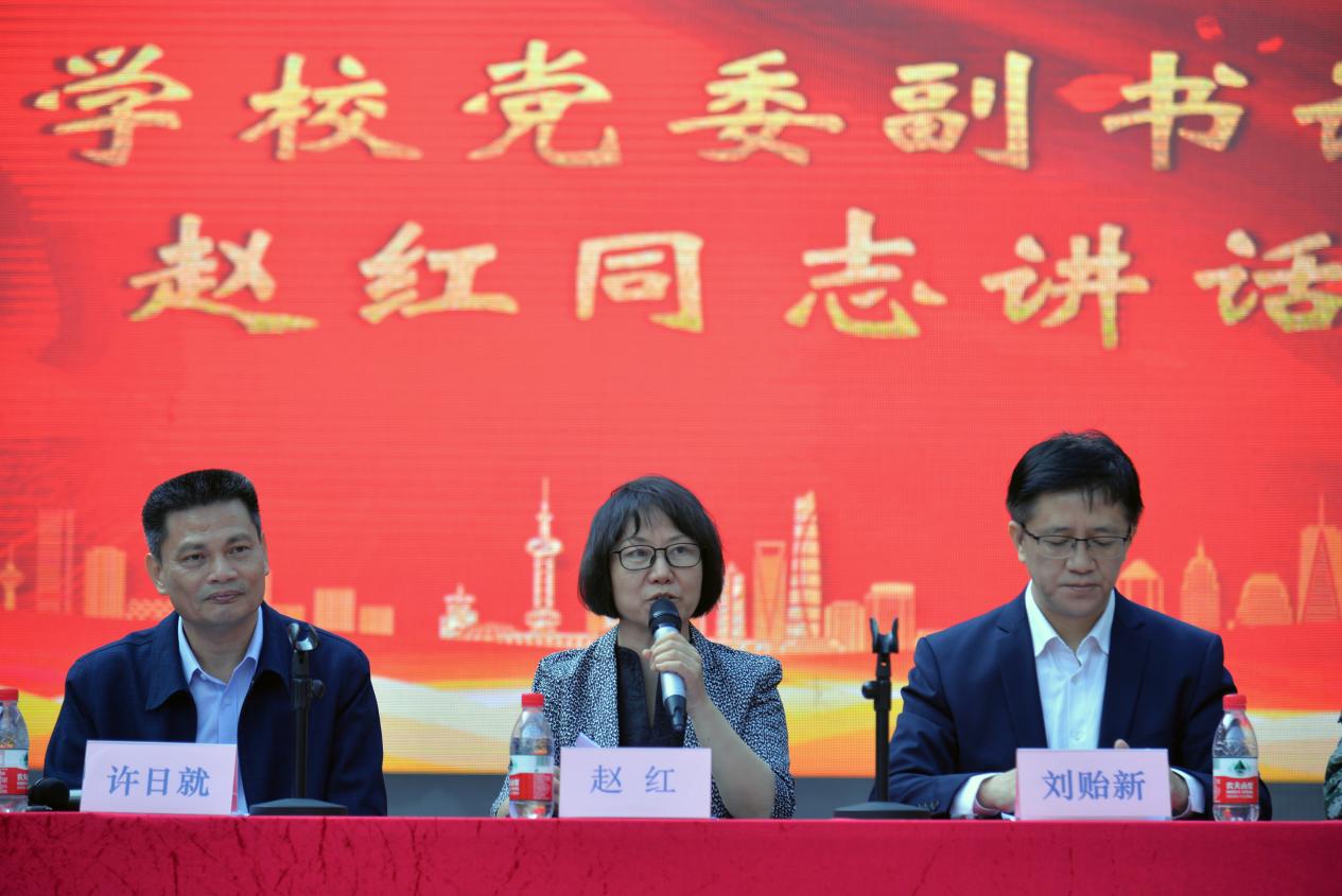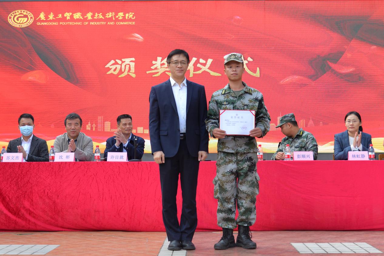 赵红作军训总结讲话,她首先代表学校全体师生向承训的广州市白云区人民武装部及全体教官表示崇高的敬意和真诚的感谢,向顺利通过军训考验的同学们、取得优异成绩、获得先进称号的集体和个人表示热烈的祝贺,并对同学们提出了几点希望:一要识势与立志;二要笃学与创新;三要合作与沟通。希望2021级新生们在以后的学习和生活中严于律己,积极乐观,勤奋好学,做一名优秀的工贸学子。