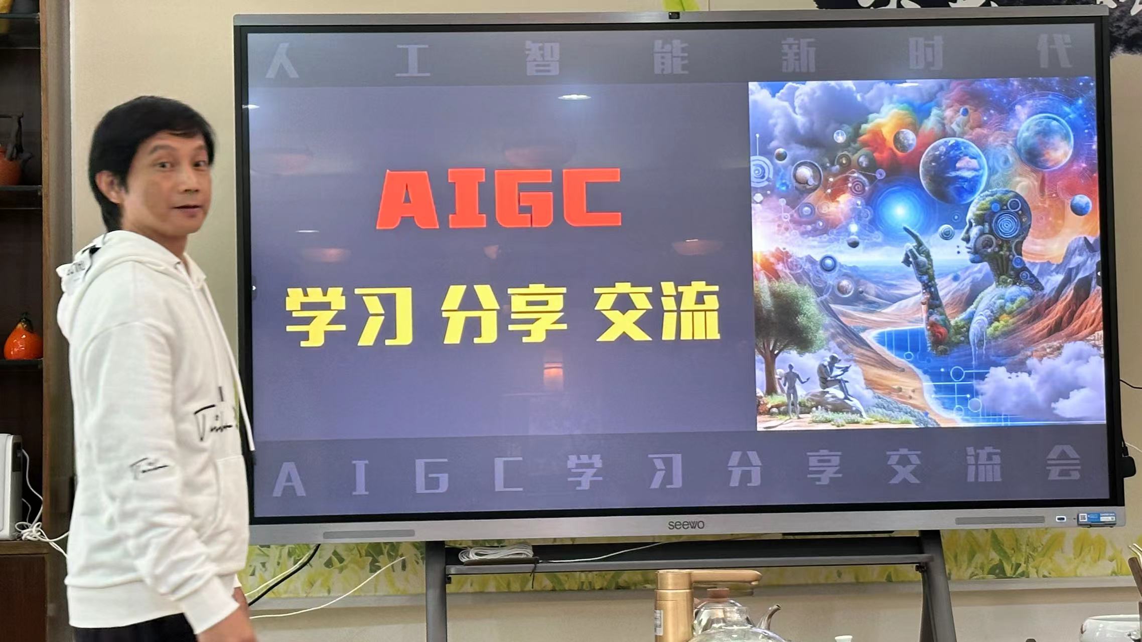 12月05日下午,艺术与教育学院组织在荔湾校区爱校楼茶艺室举办了AIGC学习交流分享会,会议分线上、线下两个会场。艺术与教育学院临时负责人、副院长张幼晖主持会议,副院长李小燕、视觉传达设计、艺术设计、数字媒体艺术设计全体教师参加线下会议;“三二分段”对接学校汕头文化艺术学校、广东花城工商高级技工学校、肇庆市工业贸易学校相关领导、专业老师参加线上会议。