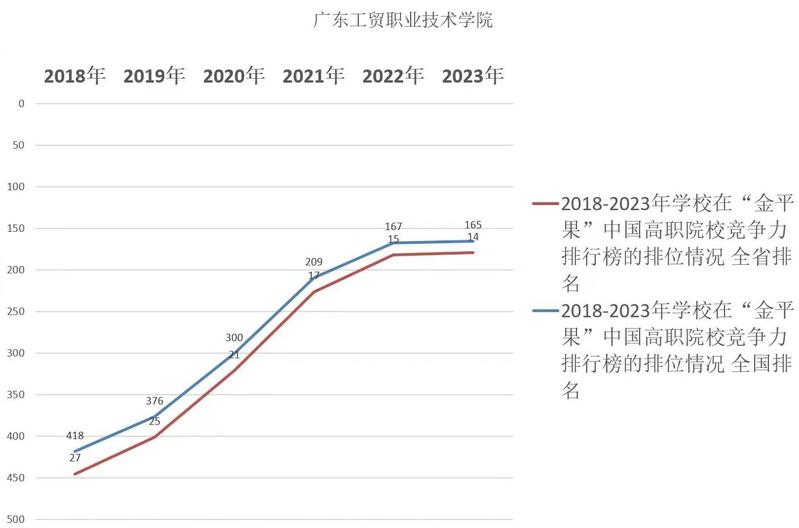 图:2018-2023年学校在“金平果”中国高职院校竞争力排行榜的排位情况