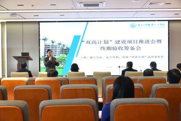 12月5日下午,学校在白云校区图书馆信息楼第一会议室召开“双高计划”验收部署工作会议。学校党委书记何汉武,党委副书记赵红,党委委员、副校长孙师家,党委委员、副校长唐毓秋,党委委员、副校长刘贻新,党委委员、副校长徐勇军,党委委员、纪委书记陈斌出席会议并发言。